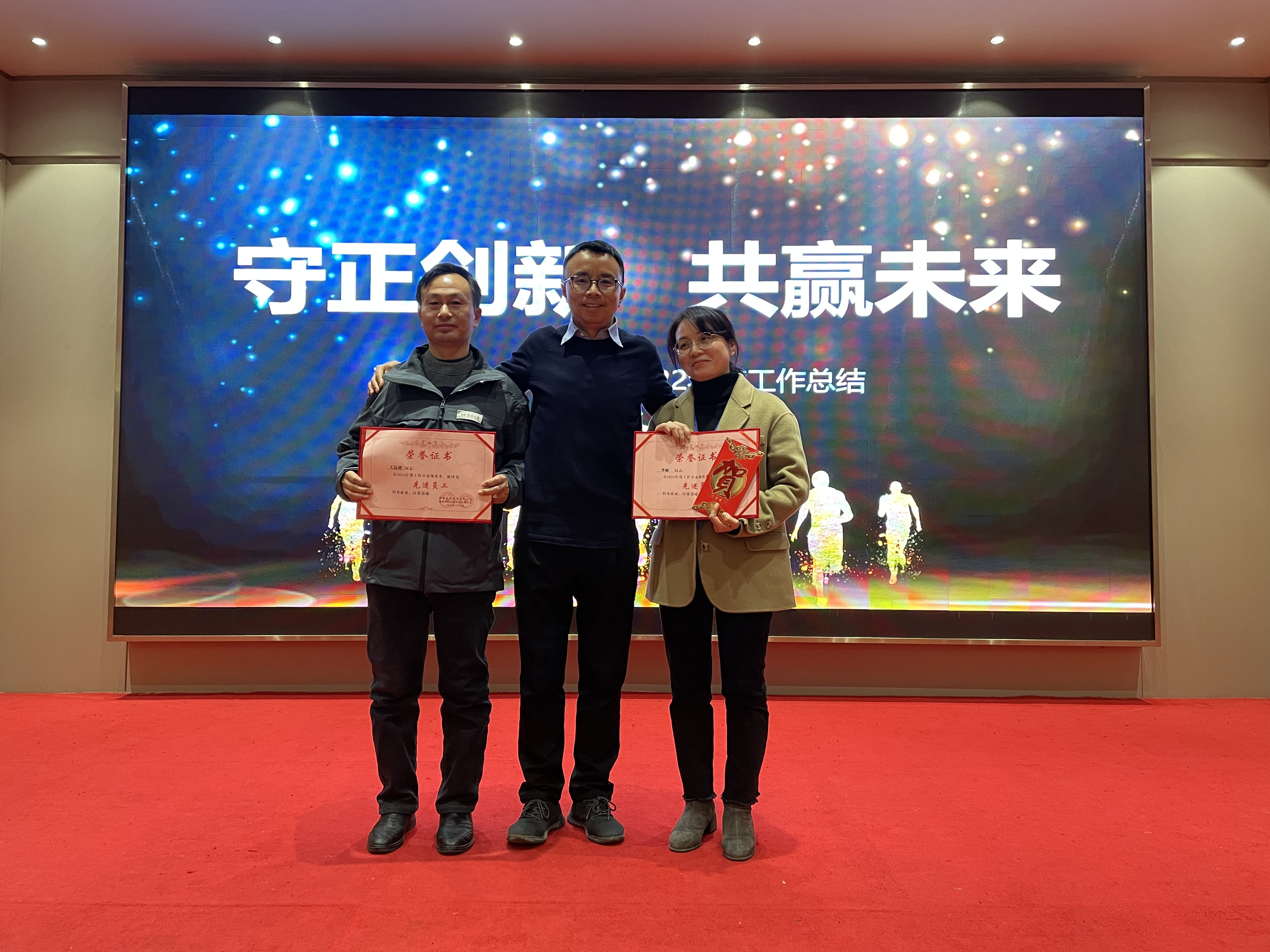 圖:陳總為先進員工頒獎 隨后,聯(lián)合水務(wù)高級副總裁陳樵在總結(jié)會上作了重要講話。2022年是不平凡的一年,盡管藥劑費、電費均上漲,但在相同的進水水質(zhì)下,荊州公司的生產(chǎn)成本卻在下降,陳總代表運管中心對生產(chǎn)運營團隊取得的成績表示祝賀和感謝。2022年制定的工業(yè)污水提標升級改造工程污泥脫水間以及A2/O池投入試運行的兩個目標均已如期完成,陳總代表建管中心對提標改造工程項目團隊以及荊州公司全體員工表示感謝。2023年,希望項目部繼續(xù)努力,高質(zhì)量如期完成整個提標改造工程建設(shè),將綜合性污水處理能力由3.0萬m3/d提標升級改造至5.2萬m3/d,同時希望生產(chǎn)部繼續(xù)做到出水100%達標以及節(jié)能降耗。