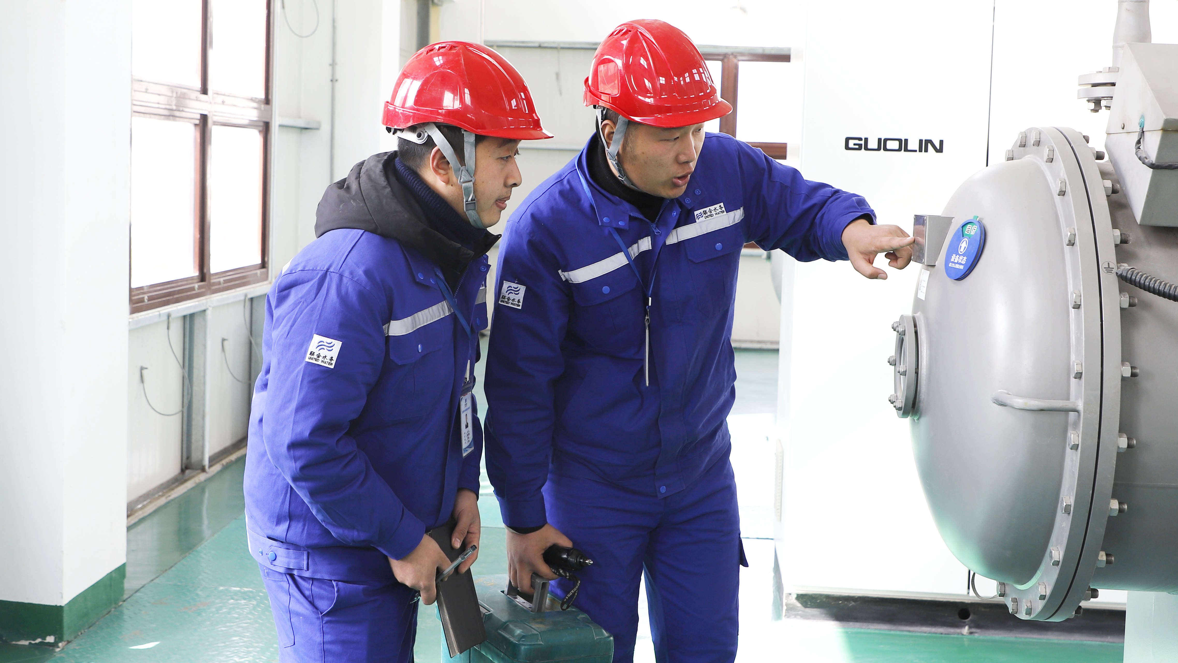 圖:馬強(qiáng)巡檢泵房 走進(jìn)客服大廳,現(xiàn)場整潔敞亮,各類告知清單和服務(wù)指南擺放整齊,文明引導(dǎo)員熱情迎接每位用戶,耐心解答疑問、引導(dǎo)辦理業(yè)務(wù),客服人員迅速進(jìn)入服務(wù)角色,做好業(yè)務(wù)受理工作,以昂揚(yáng)向上的面貌迎接前來辦理用水業(yè)務(wù)的用戶,充分展示了大廳“服誠信之務(wù)”的形象。 水務(wù)人沒有“年盹”,有的只是365天的堅守和鉚足干勁往前沖的干勁。 溫暖:堅守崗位保供水,新春溫暖千萬家 新春佳節(jié)至,情暖歲寒時。寒潮來襲讓家更多了一絲溫暖的氣息,院墻之外,維修員尹成成接到指令正頂著寒風(fēng)奔走在維修的路上。受節(jié)后寒潮天氣影響,水管冰凍現(xiàn)象增多,報修量也隨之增多,尹成成在接到工單后,火速趕到用戶家中,打開地下井蓋,關(guān)閥門、拆水表……一雙手凍得又紅又腫,但動作依舊麻利嫻熟,不到20分鐘就完成了水表更換。比起換水管的“大活”,寒潮期間更多的是一些“解凍水管”的“小活”,熱水順著水管澆下,暖流也在用戶心中涌動。 一桌團(tuán)圓飯,一臺春晚,滿屋歡聲笑語,這是億萬中華兒女關(guān)于春節(jié)最深的記憶。萬家團(tuán)圓時刻,對于一線供水人員來說則意味著更多的責(zé)任和奉獻(xiàn)。今年春節(jié),聯(lián)合水務(wù)宿遷供水公司的一線員工像往年一樣堅守崗位,用實際行動詮釋著“竭誠為民”的赤誠,用堅守與擔(dān)當(dāng)守衛(wèi)萬家燈火。 希望:薪火相傳守初心,接續(xù)奮進(jìn)新征程 今年29歲的劉亮,是聯(lián)合水務(wù)宿遷供水公司機(jī)電設(shè)備部設(shè)備維修主管。他主要負(fù)責(zé)遠(yuǎn)傳設(shè)備和壓力點(diǎn)的安裝與維修,每當(dāng)看見壓力點(diǎn)上線率提升一點(diǎn),看見汩汩清泉順利輸送到千家萬戶,他就會覺得這份工作十分有意義。如今隨著公司不斷發(fā)展,機(jī)電設(shè)備部也日漸壯大,面對新人,他不遺余力地教導(dǎo),希望他們能快速成長,為聯(lián)合水務(wù)的發(fā)展和地區(qū)供水貢獻(xiàn)出自己的力量。