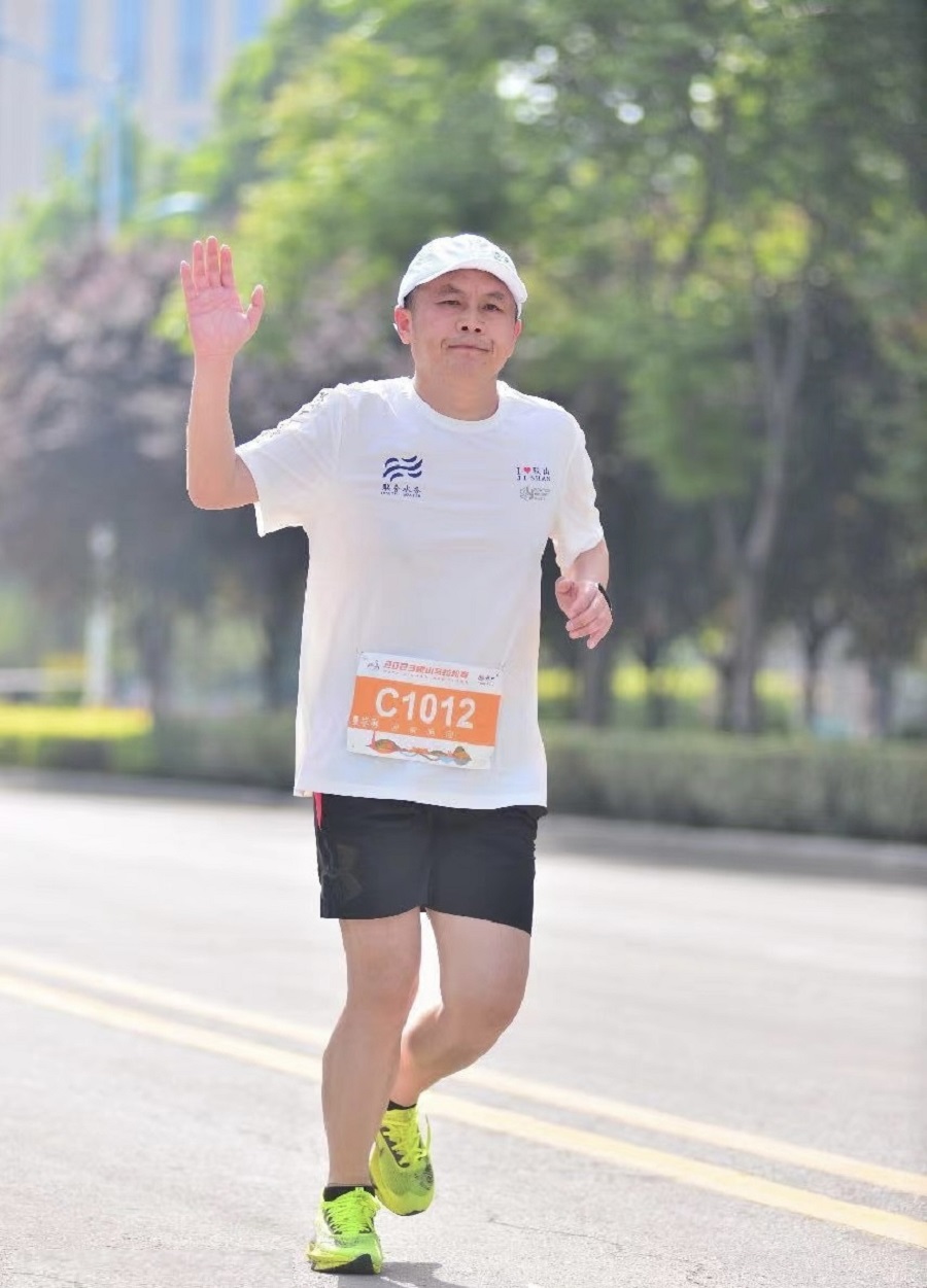 受邀參賽的山西區(qū)域和三門峽的領(lǐng)導(dǎo)同事們欣然應(yīng)約,組成團(tuán)隊參加了本次21.0975公里半程馬拉松和5公里歡樂跑。他們?nèi)橥度,堅持不懈,以運(yùn)動健兒的身份在賽道上展現(xiàn)出活力四溢的風(fēng)采,彰顯了當(dāng)代水務(wù)人朝氣蓬勃、拼搏向前的精神面貌。他們不畏困難,克服挑戰(zhàn),頑強(qiáng)地奔跑著,一路上生命與激情交織,呈現(xiàn)出耀眼的光芒。他們完賽并獲得了獎牌,特別值得一提的是山西區(qū)域總經(jīng)理夏學(xué)春在半程馬拉松中取得了出色的成績,僅用1小時48分鐘完成比賽。 “跑步不僅讓人身體健康,更使我們內(nèi)心平靜,利用跑步的時間來放空自己或者思考問題,面對繁重的工作時,可以更從容面對,在考驗選手的體能、心理素質(zhì)的同時在奔跑中磨煉我們的堅毅品格和拼搏精神。”面對采訪,夏總激動地這樣說道。