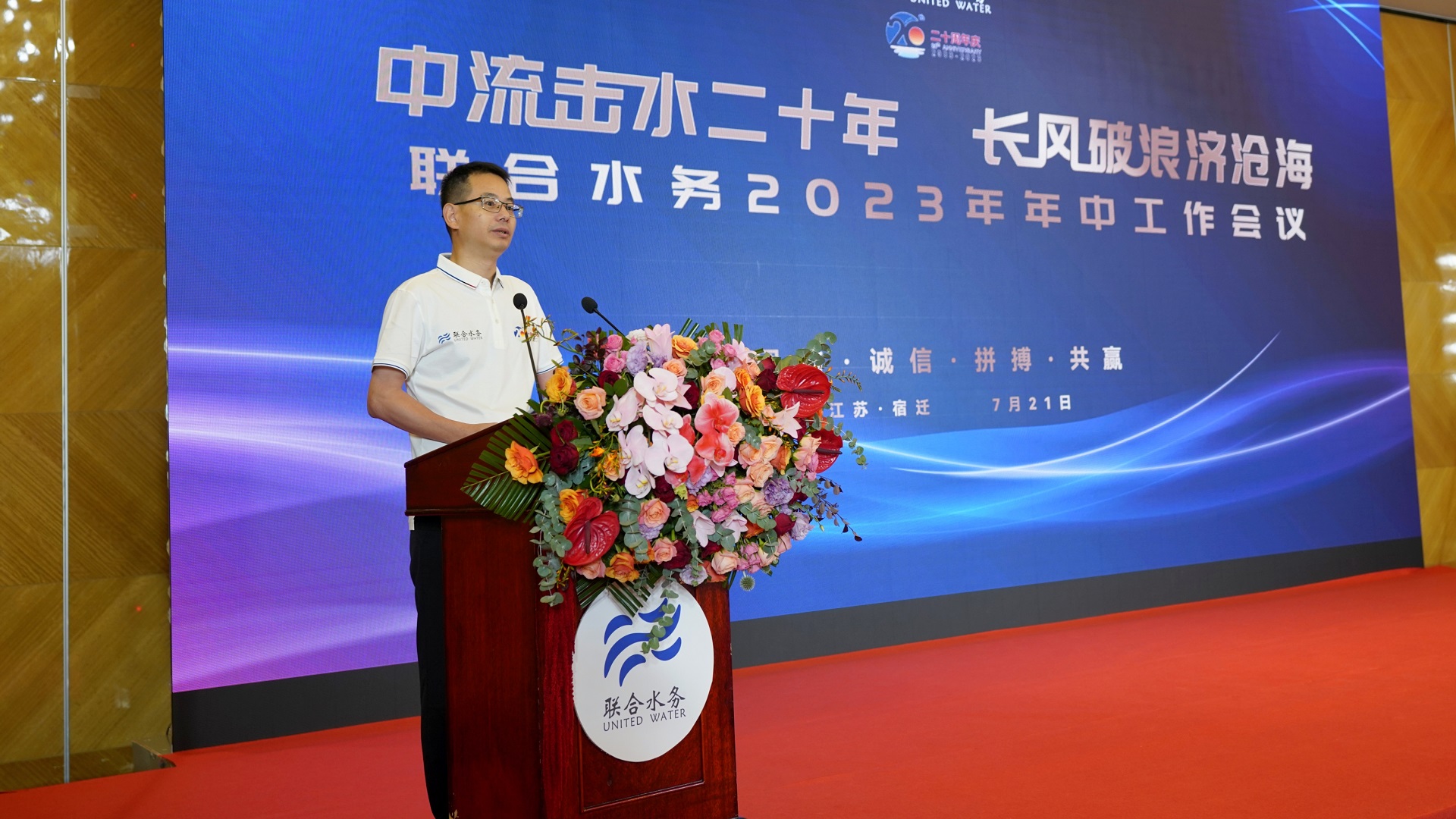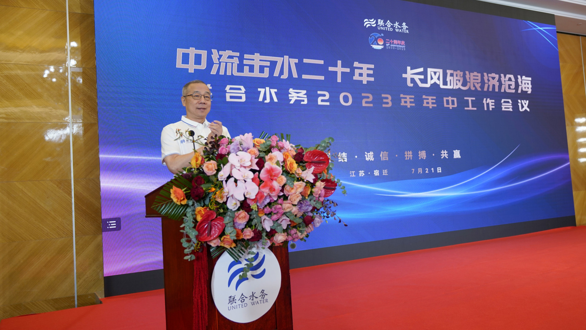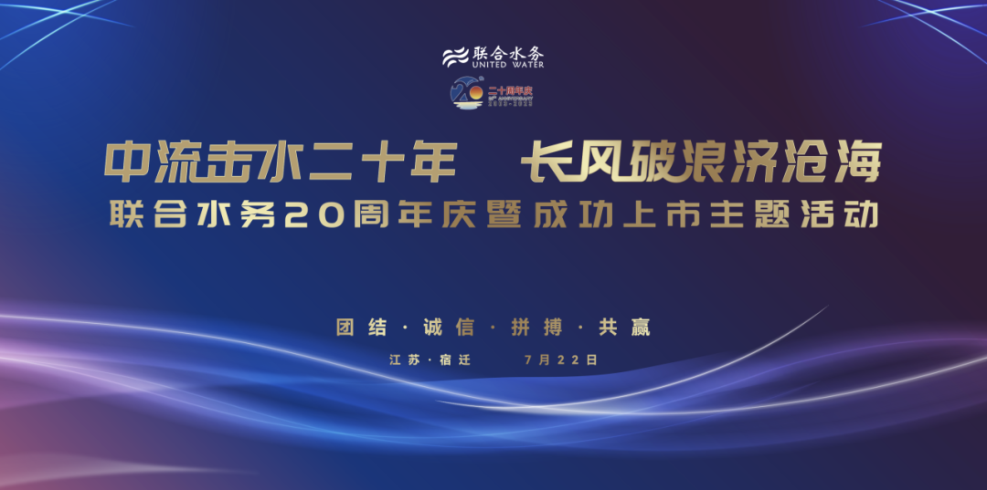 中流擊水二十年,長風(fēng)破浪濟(jì)滄海,聯(lián)合水務(wù)20周年慶主題活動于7月22日在江蘇宿遷市隆重舉行。來自聯(lián)合水務(wù)上?偛亢透鬟\(yùn)營公司的骨干管理人員、員工等齊聚一堂,共同見證聯(lián)合水務(wù)20周年華彩!慶典活動通過聯(lián)合水務(wù)官方微信視頻號同步直播,在線觀看次數(shù)超20000次,點(diǎn)贊次數(shù)超140000次。