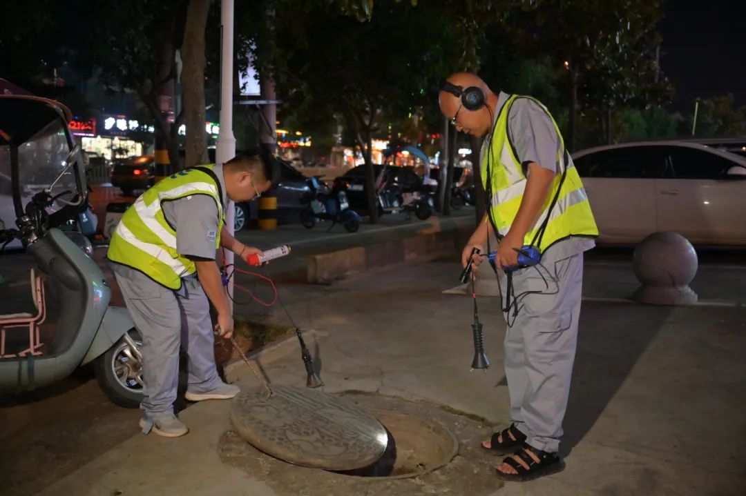 火“熱”奮戰(zhàn),加強(qiáng)管網(wǎng)巡查 為進(jìn)一步保障城區(qū)供水管網(wǎng)運(yùn)行安全,及時(shí)發(fā)現(xiàn)管道暗漏點(diǎn),咸寧聯(lián)合水務(wù)管網(wǎng)探漏人員在炎炎夏日,沿著城區(qū)大街小巷對(duì)供水管道進(jìn)行“體檢”。有時(shí),需要安靜、車流量小的環(huán)境,他們就選擇深夜出動(dòng),一手拿著聽音桿,一手拿著手電筒,利用儀器檢聽供水管網(wǎng)運(yùn)行情況,為能迅速判斷是否漏水以及精準(zhǔn)定位漏水點(diǎn),有時(shí)需要反復(fù)探測(cè)十幾次,力爭(zhēng)將各類管道漏水隱患扼殺在萌芽中。同時(shí),在供水高峰期,探漏人員還將常態(tài)化開展管網(wǎng)巡查,將責(zé)任層層落實(shí)到個(gè)人,力求件件有人管,項(xiàng)項(xiàng)有落實(shí),事事出成效,保障供水管網(wǎng)的運(yùn)行安全穩(wěn)定。