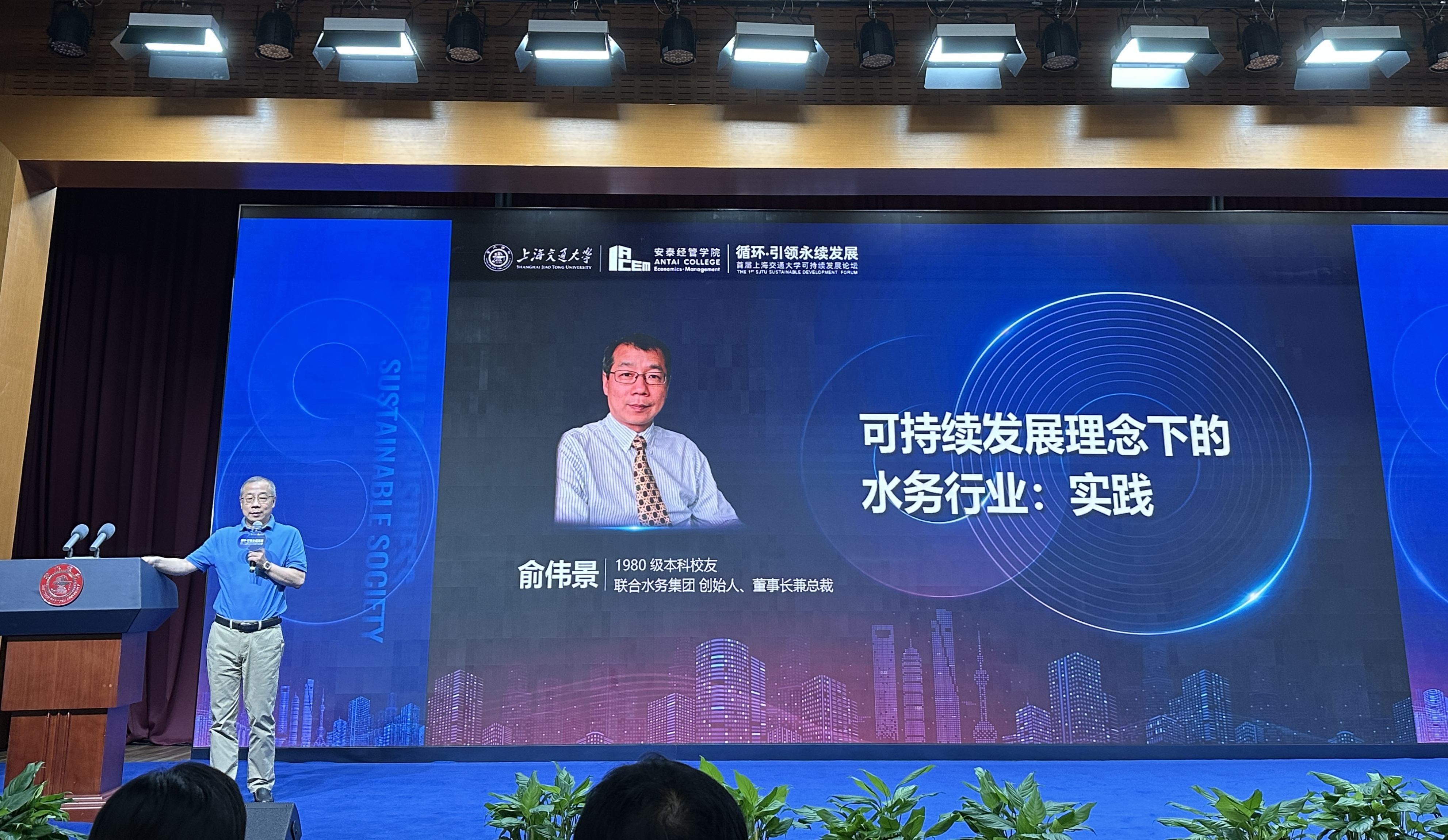 作為企業(yè)界的校友代表,俞偉景作了題為《可持續(xù)發(fā)展理念下的水務(wù)行業(yè):實(shí)踐》的主旨演講。俞偉景從我國水資源基本特征及水務(wù)行業(yè)中的供水、排水、再生水利用等方面介紹了水務(wù)行業(yè)的發(fā)展與現(xiàn)狀,并分享了水務(wù)行業(yè)圍繞可持續(xù)發(fā)展理念在新能源應(yīng)用、資源化利用、綜合治理一體化、智慧水務(wù)等方面的探索。他提及,聯(lián)合水務(wù)作為一家綜合性、全方位的水務(wù)公司,積極踐行可持續(xù)發(fā)展理念,在污水資源化利用、智慧水務(wù)等方面已有豐富的實(shí)踐經(jīng)驗(yàn),并已開始在自有水廠探索與新能源的結(jié)合,實(shí)現(xiàn)節(jié)能降碳的目標(biāo)。如今,公司邁入第二十個(gè)年頭,未來也將繼續(xù)開拓創(chuàng)新,創(chuàng)造新機(jī)遇,增添新動(dòng)力。