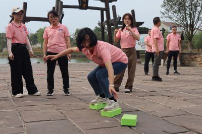 上午9時,團(tuán)建隊伍在荊州公司廠區(qū)門口集合,統(tǒng)一乘車奔赴此次的活動目的地—莫愁村。一路上,大家歡聲笑語,熱情高漲,興致勃勃。經(jīng)過兩個半小時的車程,團(tuán)建隊伍抵達(dá)了本次團(tuán)建活動的第一站——莫愁村景區(qū)。下午14時,我們整裝待發(fā),前往本次熔煉團(tuán)隊的場所-莫愁屯廣場。古老神圣的場地與熱血奮發(fā)的團(tuán)隊完美適配。工作小組緊鑼密鼓布置場地,講述團(tuán)建項目規(guī)則和要求,全情投入的熔煉之賽在“抱團(tuán)取暖”分組游戲中開拔啟航。 在荊州公司總經(jīng)理鄭彬的指導(dǎo)下,我們先后開展了無敵風(fēng)火輪、珠行萬里、摸石過河三項團(tuán)體競賽項目。無敵風(fēng)火輪培養(yǎng)了隊員團(tuán)結(jié)一致,密切合作,克服困難的團(tuán)隊精神,加強(qiáng)了服從指揮、一絲不茍的工作態(tài)度。珠行萬里中隊員們能強(qiáng)烈感受團(tuán)隊間有效的緊密配合、有序銜接,大家自發(fā)為共同的目的以及團(tuán)隊的責(zé)任感做好每一個環(huán)節(jié)。最具挑戰(zhàn)的當(dāng)屬摸石過河,它是耐心和速度的較量,既提高了團(tuán)隊協(xié)作能力和戰(zhàn)略戰(zhàn)術(shù),又訓(xùn)練了團(tuán)隊內(nèi)部的協(xié)調(diào)能力,增強(qiáng)了隊員間的相互信任和理解。