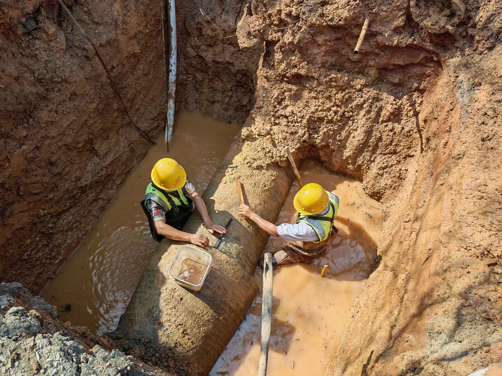 下午5點(diǎn),在張總嚴(yán)密部署下,管網(wǎng)部對(duì)破損的DN600管道完成修補(bǔ),現(xiàn)場(chǎng)試壓,滿足供水條件。管網(wǎng)部嚴(yán)格按照施工作業(yè)制度,上下一心,順利完成施工任務(wù),維修時(shí)間由原計(jì)劃的18小時(shí)縮短至9小時(shí),時(shí)間上縮短了一半,減少了用戶投訴,極大地保障了居民用水及重點(diǎn)企事業(yè)單位生產(chǎn)用水,進(jìn)一步提升公司社會(huì)良好形象。