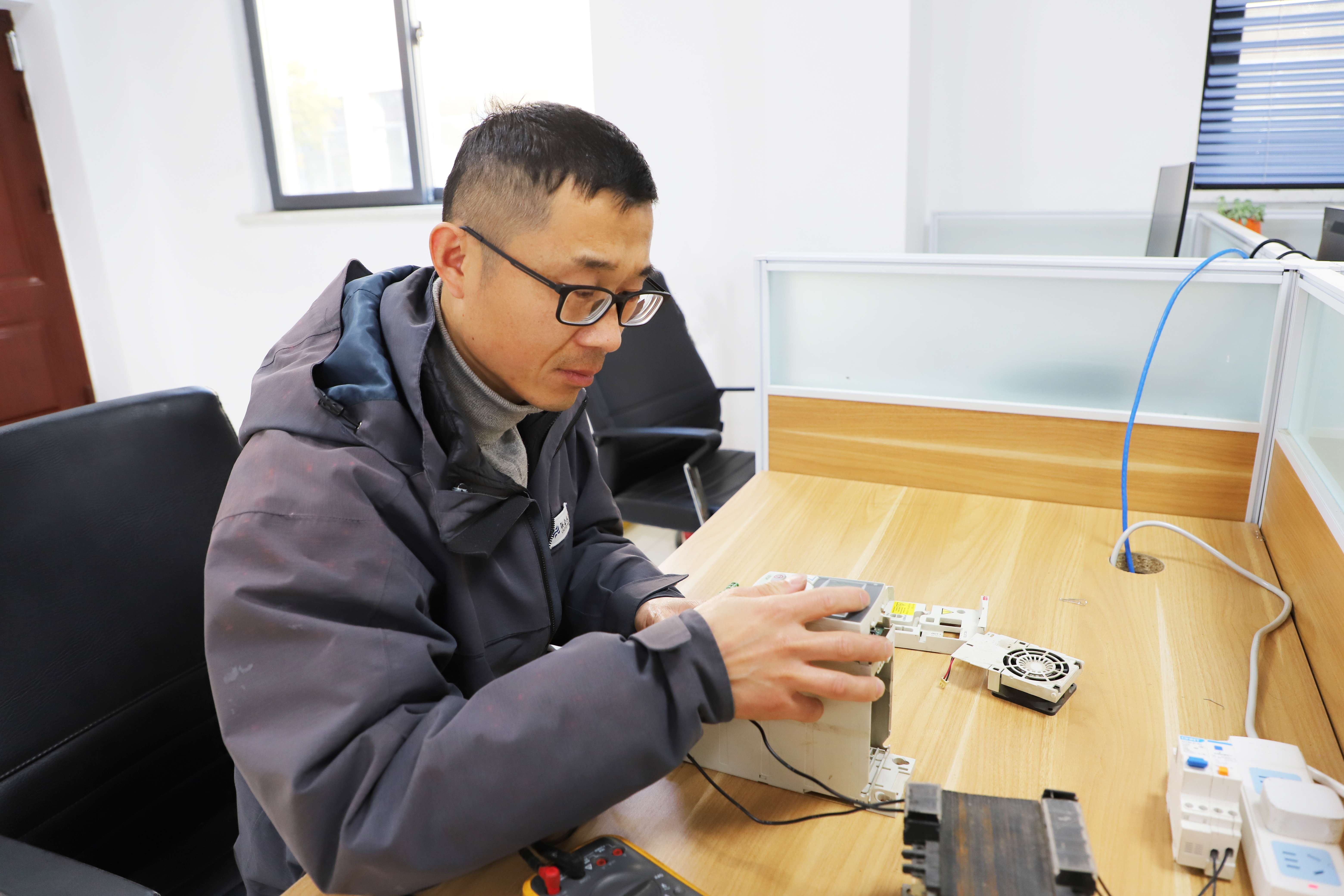01可以說,哪里的設(shè)備有故障,哪里就有你們,這些年,您經(jīng)歷過大大小小搶修,哪次搶修經(jīng)歷令您印象深刻? 張曉超:設(shè)備維修工作是水廠正常運轉(zhuǎn)的關(guān)鍵之一,在面臨故障和緊急情況時,最重要的就是能夠迅速響應(yīng)并解決問題,我參加過許多次搶修,其中讓我印象最深刻的是2014年維修三棵樹泵站4號變頻器。這是我第一次維修變頻器,當(dāng)時宿遷能維修進口變頻器的廠家寥寥無幾,故障發(fā)生后只能靠我們自己想辦法維修,我和同事們連夜查閱資料、焊接電路板、自制防短路檢測設(shè)備,經(jīng)過多個日夜的努力,最后成功完成了維修任務(wù)。這次經(jīng)歷讓我深刻地認識到團隊合作的力量,以及在困難面前不斷探索和嘗試的重要性。