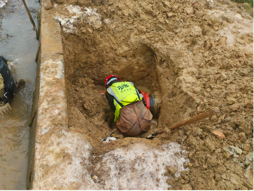 鏖戰(zhàn)冰雪保供水,管網(wǎng)小隊在行動。近日,咸寧思源水務接到報修電話,張公廟片區(qū)管道有漏水現(xiàn)象,“管網(wǎng)小分隊”立即聞聲而動,開展管網(wǎng)維修作業(yè)。寒風刺骨,雨雪交加,冰水浸濕衣服,一雙雙手凍得通紅,面對困難,搶修人員二話沒說,一鐵鍬一鐵鍬的挖開泥土,用雙手伸入冰冷的泥水中將漏損處淤泥清理干凈。粗糙的雙手,劃傷、凍裂簡單處理后繼續(xù)上陣,腳下冰冷的淤泥,每走一步都很吃力,他們費勁地一點一點把受損水管從淤泥里拖動出來,最終于下午四時許修復管道,恢復正常供水。管網(wǎng)維修人員用精湛的專業(yè)技術和嚴謹?shù)墓そ尘,高效?/span>、高質量、高標準、高水平完成搶修任務,保障了張公片區(qū)的供水安全。
