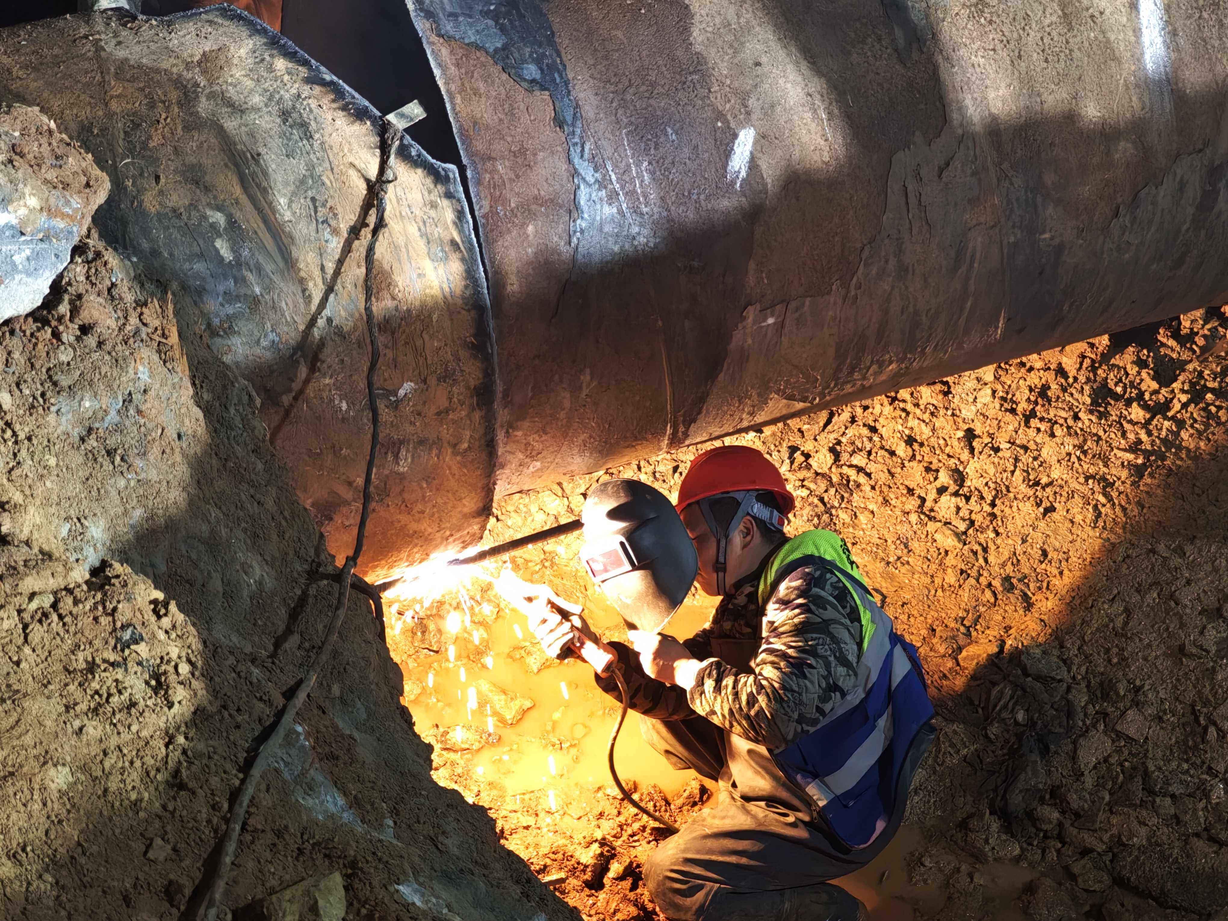險(xiǎn)情就是命令,7:56,管網(wǎng)部維修員已經(jīng)趕至現(xiàn)場(chǎng),發(fā)現(xiàn)系通江大道DN1200長(zhǎng)江引水輸水管線突發(fā)爆管,造成沿線渡普鎮(zhèn)、向陽湖鎮(zhèn)、寶塔片區(qū)、咸安經(jīng)濟(jì)開發(fā)區(qū)、鳳凰工業(yè)園、咸寶路、107國(guó)道、巨寧大道等區(qū)域沿線企業(yè)、居民用水困難,咸寧聯(lián)合水務(wù)立即啟動(dòng)《突發(fā)大口徑管道爆管事故應(yīng)急預(yù)案》,各部門迅速響應(yīng)并采取應(yīng)急措施,向上級(jí)政府匯報(bào)相關(guān)情況,及時(shí)向社會(huì)各界公布爆管搶修信息,搶修人員爭(zhēng)分奪秒開展搶修作業(yè)。