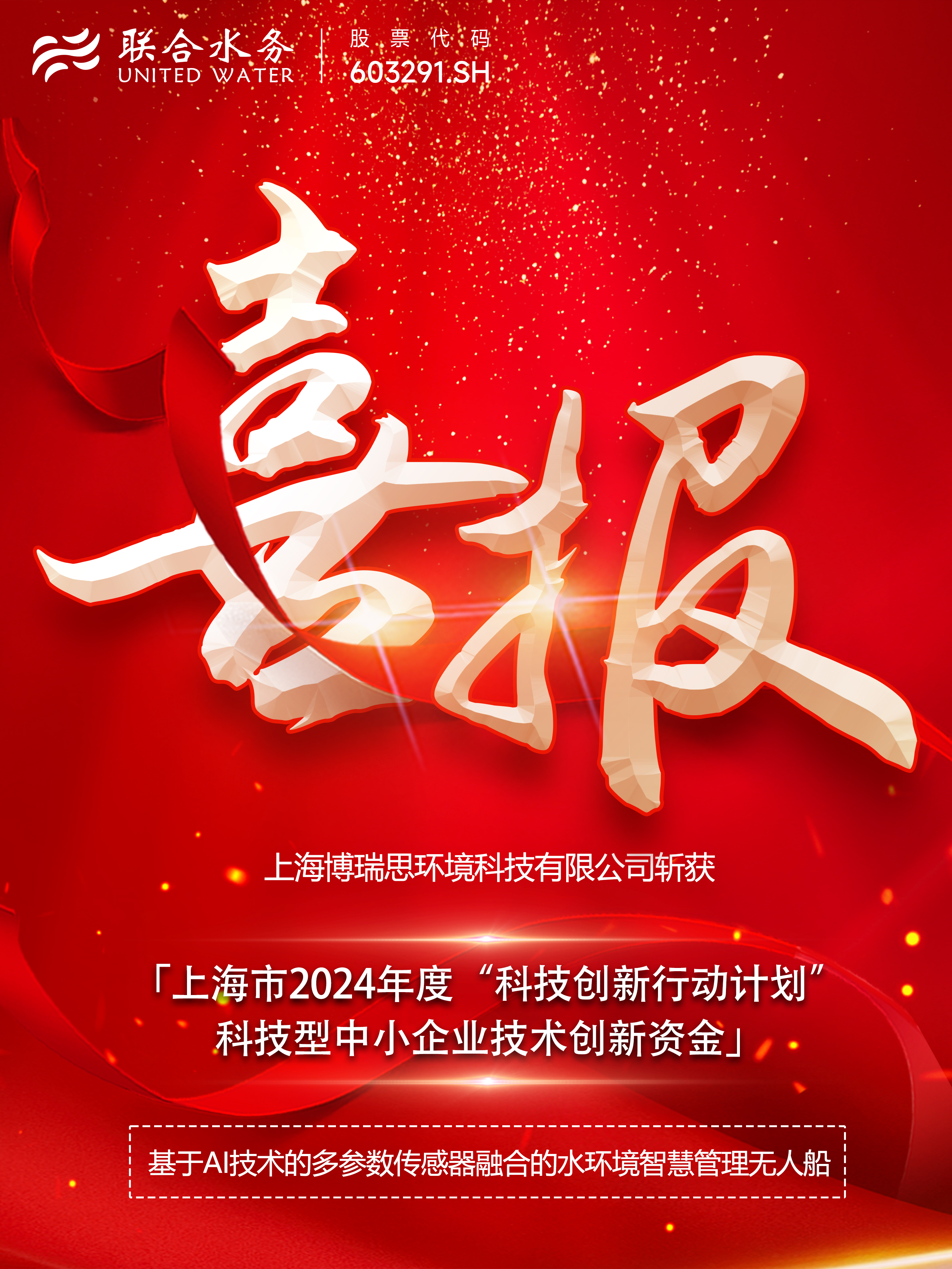 2024年11月29日,上海市科學(xué)技術(shù)委員會(huì)正式公示上海市2024年度“科技創(chuàng)新行動(dòng)計(jì)劃”科技型中小企業(yè)技術(shù)創(chuàng)新資金擬立項(xiàng)項(xiàng)目清單。聯(lián)合水務(wù)集團(tuán)下屬上海博瑞思環(huán)境科技有限公司的 “基于AI技術(shù)的多參數(shù)傳感器融合的水環(huán)境智慧管理無人船”項(xiàng)目,在專業(yè)賽類別經(jīng)過第一輪通訊評(píng)審、第二輪大賽路演答辯成功入選,獲得創(chuàng)新資金立項(xiàng)。