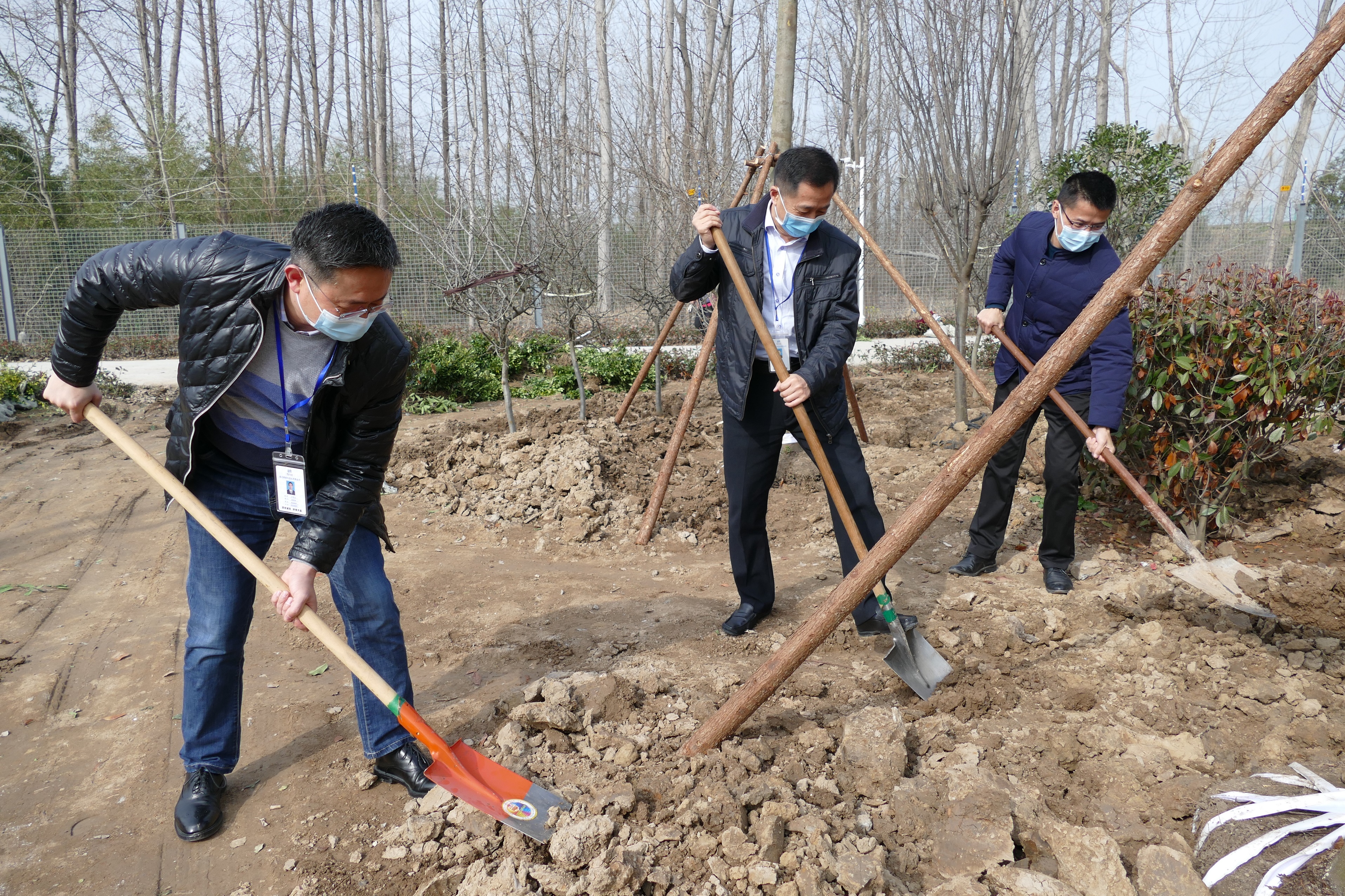 陽春三月,萬物復蘇的季節(jié),沖散疫情陰霾,迎來勃勃生機。今年3月12日,是我國第42個植樹節(jié)。植樹造林是創(chuàng)造良好生態(tài)環(huán)境、澤被后世的有益之舉,參與植樹即是一種義務,更是一種責任,聯(lián)合水務集團宿遷銀控自來水有限公司每年都積極行動起來,栽下片片綠蔭,護衛(wèi)碧水藍天。 近年來,秉持母公司聯(lián)合水務集團生態(tài)為先的企業(yè)發(fā)展理念,宿遷銀控自來水有限公司從自身做起,致力于打造園林式廠區(qū)環(huán)境,將環(huán)保意識、生態(tài)意識根植員工心間,每年以3月12日“植樹節(jié)”為契機,植樹造林,為廠區(qū)增添一抹新綠,提升員工生態(tài)意識。 2020年新年伊始,遭遇疫情,對今年的植樹節(jié),公司領導更加重視,希望通過此次植樹活動,激發(fā)員工更高漲的環(huán)保熱情,作為供水人,更應該懂得生態(tài)環(huán)境的重要性,以更強的責任心,供優(yōu)質之水。經(jīng)過行政管理部前期做方案、采購樹苗及植樹工具、配備防疫物品、醫(yī)藥箱等大量籌備工作,3月12日上午9:30,植樹活動在河湖連通應急水源泵站廠區(qū)正式拉開帷幕,來自公司各部門、區(qū)域供水服務中心、工程公司、水檢公司、污水廠的員工代表共計30余人參加了活動,銀控自來水公司總經(jīng)理曾真等公司領導親臨現(xiàn)場,率先垂范,用實際行動為員工們做出榜樣。