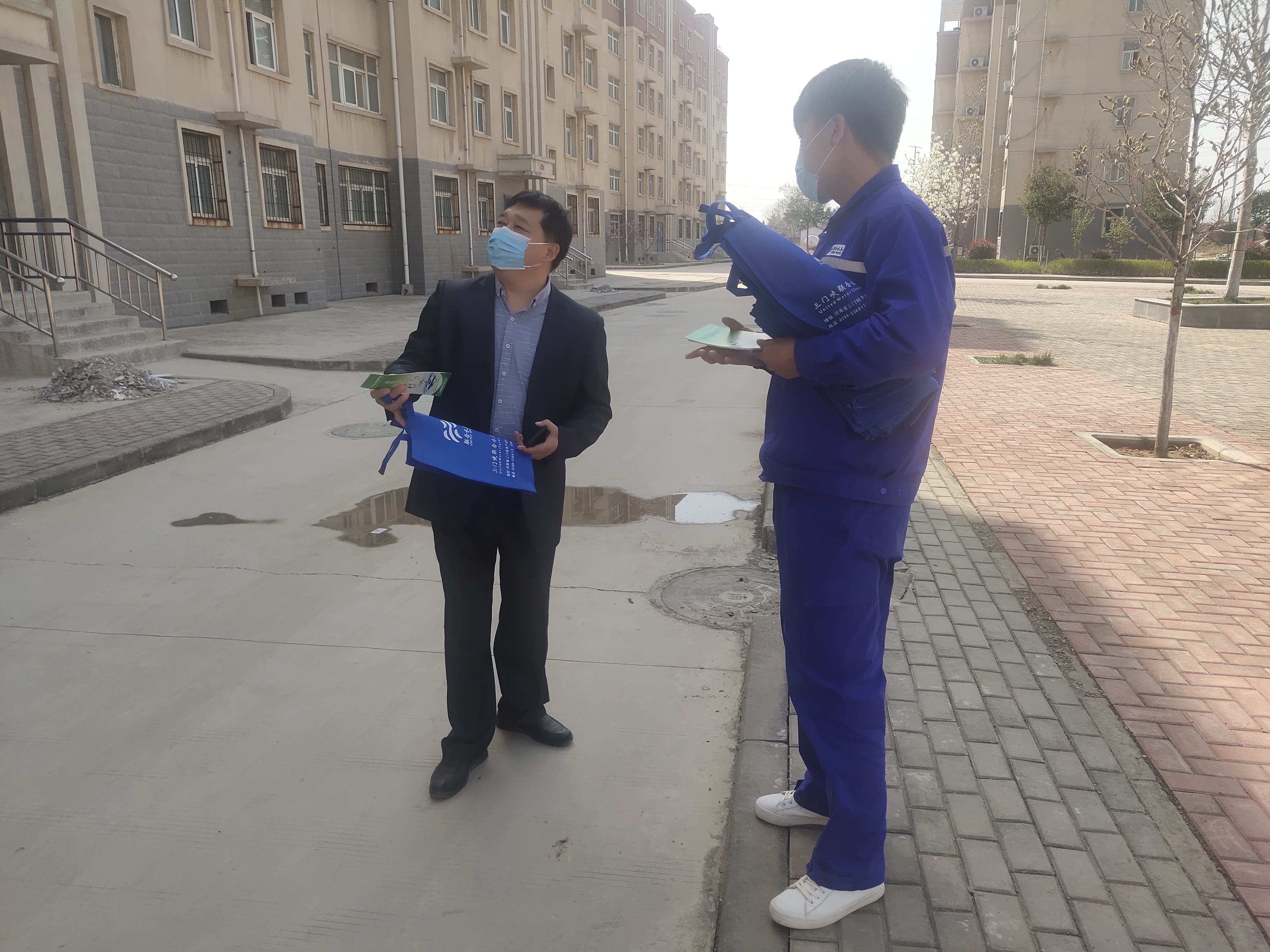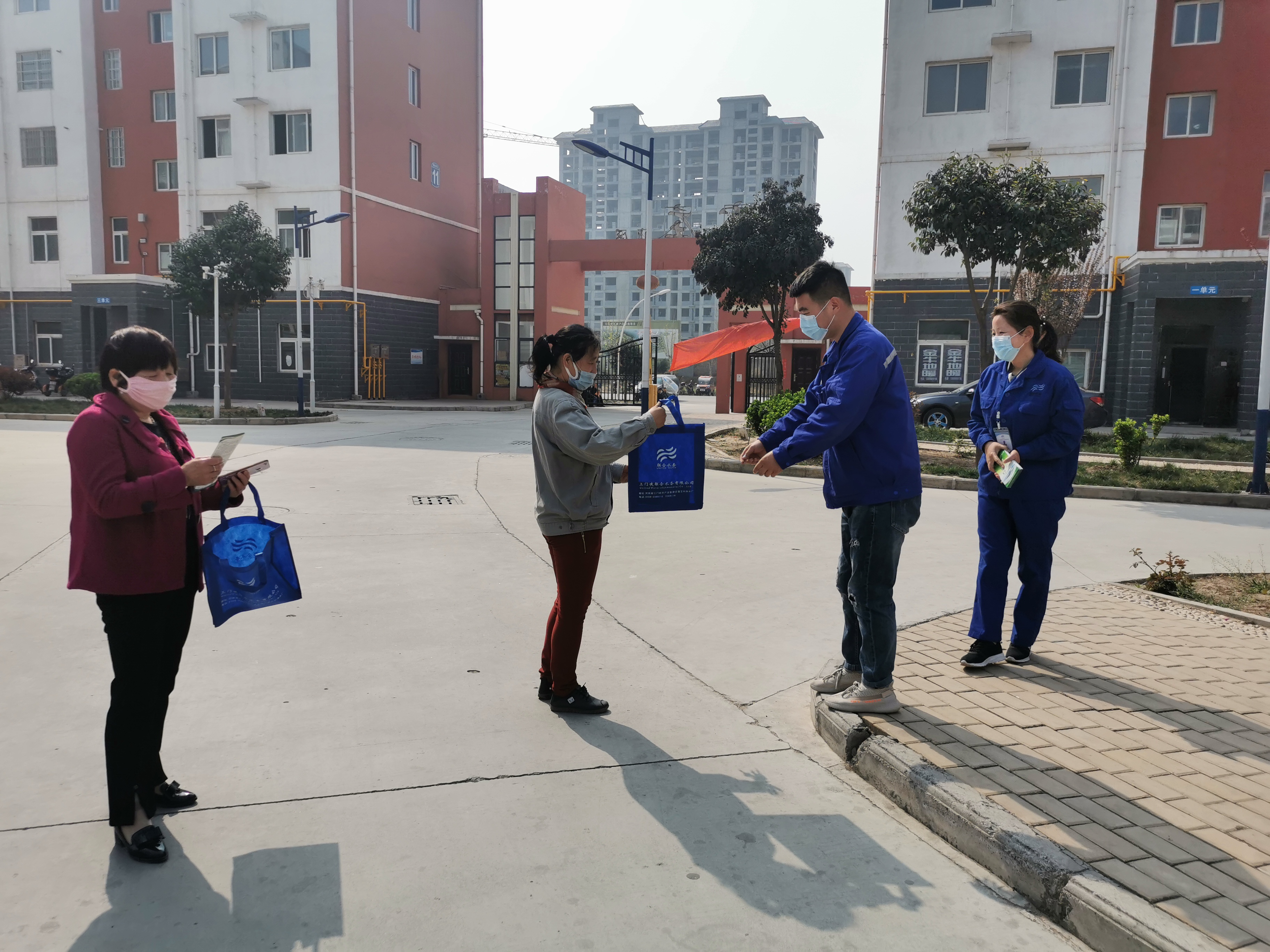 圖3:工作人員給小區(qū)住戶(hù)做供水宣傳