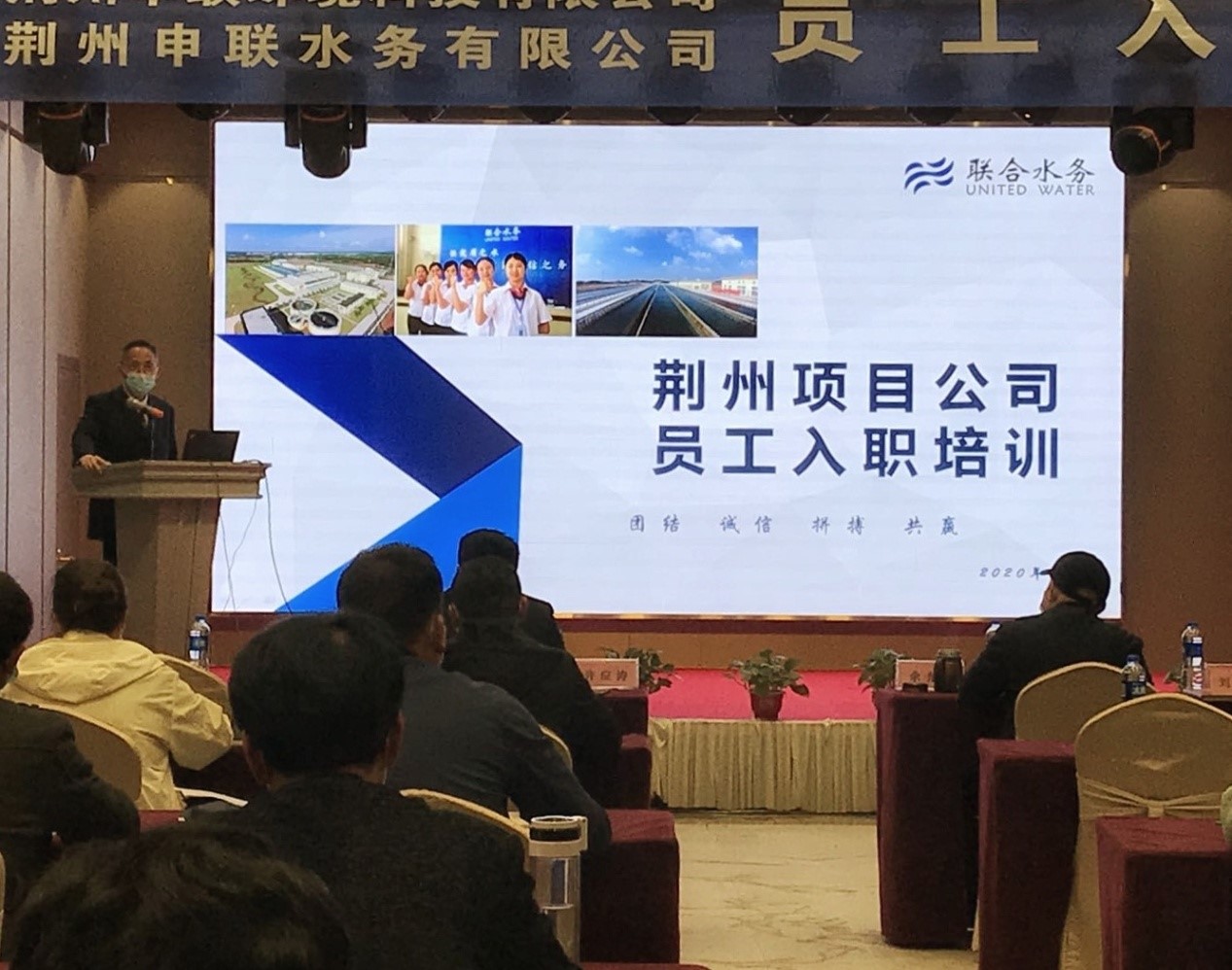 2020年1月17日聯(lián)合水務集團公司正式簽約荊州經開區(qū),取得了荊州經濟技術開發(fā)區(qū)的工業(yè)污水項目特許經營權及生活污水項目的25年特許經營權,至此,荊州申聯(lián)環(huán)境科技有限公司、荊州申聯(lián)水務有限公司(以下簡稱“荊州申聯(lián)公司”)正式成立。 為幫助全體員工全面了解集團概況及企業(yè)文化,營造奮發(fā)向上、團結協(xié)作的工作氛圍,幫助全體員工更好的適應新機制、新環(huán)境、新崗位,4月22日至23日在荊州市盟達酒店二樓多功能會議廳開展了荊州申聯(lián)公司員工入職培訓。會議由咸寧聯(lián)合水務有限公司人力資源部經理陳紅主持,荊州申聯(lián)公司總經理許應濤,咸寧聯(lián)合水務有限公司人事行政副總經理張偉華、咸寧思源水務有限公司常務副總經理施政云、宿遷耿車污水處理廠廠長趙祥祥等聯(lián)合水務集團旗下多個項目公司高管及荊州申聯(lián)公司各部門員工共計40余人參加了培訓。