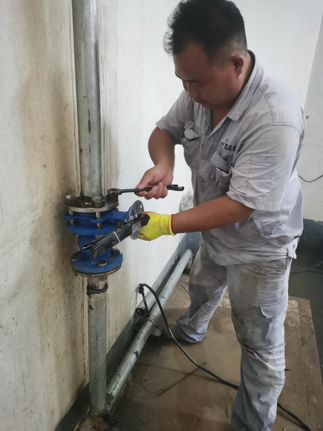 圖6:管網(wǎng)維修員正在搶修 二次供水運(yùn)營(yíng)部把好“二次供水安全”關(guān) 為保障高層住戶正常用水,宿遷銀控對(duì)負(fù)責(zé)管理的152個(gè)二次供水加壓泵房進(jìn)一步完善了供水安全保障措施。每個(gè)泵房都配備了視頻監(jiān)控系統(tǒng)、紅外報(bào)警系統(tǒng)、可視門禁管理系統(tǒng),調(diào)度中心實(shí)時(shí)監(jiān)測(cè)設(shè)備運(yùn)行情況,同時(shí),巡檢員每周對(duì)泵房至少進(jìn)行兩次巡檢。二次供水的泵房一般都設(shè)在陰暗潮濕的地下停車場(chǎng),巡檢人員在這樣的環(huán)境下,巡檢一遍需要一個(gè)多小時(shí),每個(gè)人至少負(fù)責(zé)二三十個(gè)泵房,一旦泵房出現(xiàn)任何問題,不分晝夜、風(fēng)雨無阻,他們都必須第一時(shí)間到達(dá)現(xiàn)場(chǎng)處理問題。為高層住戶把好供水關(guān),再苦再累都值得。