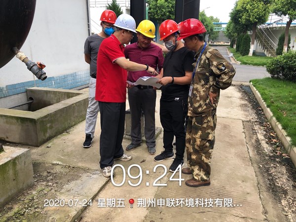 圖5:集團(tuán)建設(shè)管理部石總親臨荊州項(xiàng)目公司現(xiàn)場指導(dǎo)換熱器安裝工作 水是生命之源、萬物之本、城市之基。荊州申聯(lián)人融情于水,用滿頭大汗、汗流洽衣見證了暑旱酷熱下對(duì)本職工作“不忘初心、牢記使命”的堅(jiān)守。他們眾志成城、共克酷暑,用實(shí)際行動(dòng)踐行“為用戶提供優(yōu)質(zhì)之水,為保護(hù)社會(huì)環(huán)境提供潔凈的水處理服務(wù)”的企業(yè)使命,全身投入高溫治污保生產(chǎn)的戰(zhàn)斗之中,以治污聚人心,以治污促業(yè)務(wù),以治污強(qiáng)發(fā)展,以出水達(dá)標(biāo)排放為城市賦能、為百姓謀福。 |