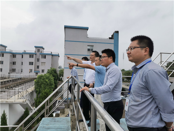 圖2:劉總一行視察生活污水厭氧池 最后,劉總一行在辦公大樓四樓會(huì)議室召開座談會(huì)。會(huì)上,荊州公司蔡猛總匯報(bào)了目前荊州申聯(lián)公司進(jìn)水及收入情況,并對提高收入水平制定了具體方案。劉總對荊州申聯(lián)公司上半年的成績表示肯定,并提出了如下四點(diǎn)工作要求:一、保質(zhì)保量按時(shí)完成開發(fā)區(qū)政府督辦的除臭工程;二、工業(yè)污水提標(biāo)升級改造項(xiàng)目專家評審已通過,荊州公司需統(tǒng)籌推進(jìn)項(xiàng)目建設(shè)工作;三、加速推進(jìn)園區(qū)智慧管網(wǎng)項(xiàng)目,盡快落實(shí)總體設(shè)計(jì)方案;四、希望荊州公司繼續(xù)對區(qū)域業(yè)務(wù)進(jìn)行拓展,爭取在荊州區(qū)域內(nèi)拓展更多更好的供水、治水項(xiàng)目,拓寬增收發(fā)展的新平臺(tái)。