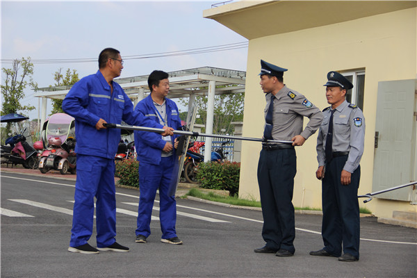 圖:反恐防暴演練現(xiàn)場(chǎng) “放下武器,不準(zhǔn)動(dòng)”。反恐防暴演練在緊張激烈的斗爭(zhēng)中開啟。演練現(xiàn)場(chǎng)在王英水廠正門,一名可疑人員持兇器強(qiáng)行進(jìn)入水廠,盡管保安人員一再言語(yǔ)阻止,但可疑人員依舊我行我素,采取翻越柵欄方式進(jìn)入水廠。保安人員第一時(shí)間拿起盾牌、警棍、鋼叉等警用防暴工具,迅速將可疑人員制服,順利完成此次反恐防暴演練。