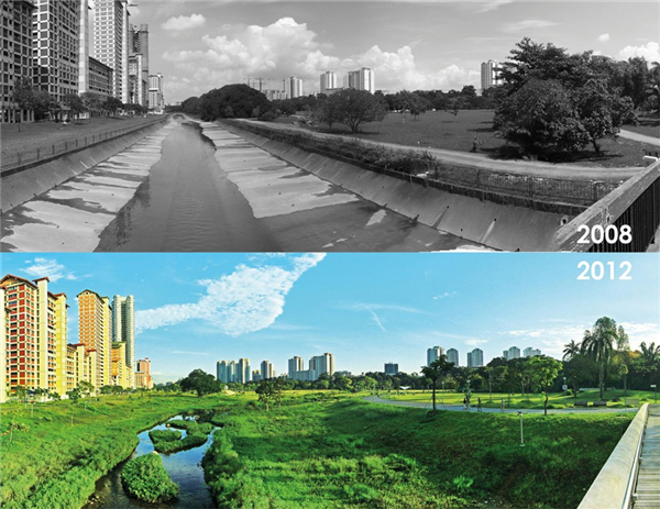 備注:國家級野生保護動物“黑水雞”,圖片來源于網絡 利水篇 人類社會的發(fā)展歷程中無不充斥著人與自然的辯證關系。理水治水最終離不開以人為本,生態(tài)服務的宗旨與原則。新加坡作為一個典型的水資源匱乏的國家,在水的利用與保護上,做出了巨大的努力, ABC水計劃(Active, Beautiful, Clean)就是在這樣的背景下誕生的。 該計劃旨在拉近人與水之間的關系,運用一個更好的雨水管理方式,盡可能把每滴雨水留住,將下水道、溝渠、水庫改造成為富有活力的、美麗的、清潔的小溪、河流與湖泊,與鄰近的土地成為一體,以創(chuàng)造出充滿活力的社區(qū)公共空間。 其主要采用自然凈化過程,包括沉淀、滲透與植物吸收等作用,主要工程元素包含沉淀池、植草溝、人工濕地、生物滯留溝、生物滯留池及生態(tài)工法駁岸等等,同時也包含多種綠色建筑、公共教育空間等配套措施。