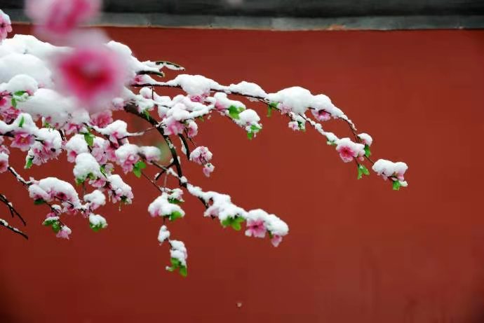 好“雪”知時節(jié),當(dāng)“春”乃發(fā)生?吹窖┗ㄒ唤z絲,似有似無,緩緩地,輕輕飄飄地的飄落,我想到了“潔白、晶瑩、柔軟、明凈、無暇、素雅”這些形容白雪的詞兒;想起了“白雪紛紛何所似”“來若柳絮因風(fēng)起”“草木之花多五出,獨(dú)有雪花多六出”“忽如一夜春風(fēng)來,千樹萬樹梨花開”等詩句;想起了“瑞雪照豐年”的諺語。 瑞雪紛飛,是冬季的一幅素描作品。用心感受逝去的歲月,時間過得真快,一年又一年,有多少歲月難以釋懷,有多少日子難以放棄,記憶里的故事已默然成曲。 “瑞雪兆豐年”小時候只喜歡除夕下雪好玩,不懂得是啥意思?聽大姑說,“瑞雪”就是說不大不小、不多不少的雪,就是說恰到好處的冬雪,預(yù)示著明年是豐收的一年。因?yàn)榇笱辂溩由w上里一層厚厚的棉被,綠油油的麥青可免受惡寒侵害。雪又富含養(yǎng)料,是上好的天然肥料,滋養(yǎng)麥子,還可以凍死那想偷莊稼的害蟲?芍^一舉三得,漫野的麥子不是好收成又是什么呢? 雙手捧起雪花,讓感悟的情愫向著年的方向飄去。那晶瑩的雪花,彌漫這銀裝素裹的世界,感受天地之靈氣,象征著吉祥,象征著幸福。 雙手捧起雪花,追憶這平凡一年的中不平凡,去問一問雪花,這一年你收獲了什么?雪花會給奮斗者一個溫暖的擁抱和一個滿意的結(jié)果。 雙手捧起雪花,守護(hù)著流年里的溫暖,去享受這一年一年生活中的安然和淳樸,排遣胸中的遺憾和憂愁。 暮雪姍姍應(yīng)景遲, 初雪如夢,紛紛揚(yáng)揚(yáng)。 一夜北風(fēng)緊,開門雪尚飄。 紛沓飛揚(yáng),鋪天蓋地; 山舞銀蛇,原馳蠟象; 集錦純白,浩渺無垠。 梅花報春信,瑞雪兆豐年 吉雨送佳季,來年谷滿倉 北國好風(fēng)光,盡在大絳州 或 白雪卻嫌春色晚,故穿庭樹作飛花 二月春雪下絳州,恰是瑞雪兆豐年