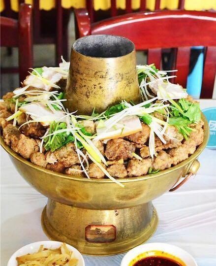 (圖:紅紅火火) 絳州銅火鍋 “新絳火鍋”有著悠久的歷史,在當(dāng)?shù)匕傩招闹姓紦?jù)重要位置,一鍋熱氣騰騰、紅紅火火的“新絳火鍋”,是新絳人招待親友、闔家共聚的不二之選。 新絳火鍋保留了最早銅火鍋的原汁原味,以味鮮湯美、入口咸香、回味悠長著稱。該火鍋采用極富古絳州特色的銅火鍋為器皿,以木炭為燃料、熬制的老湯為湯料,選用經(jīng)過煮、炸、燉、蒸的五花肉片、排骨、酥肉、油炸肉丸、粉條、海帶、豆腐、白菜等菜肴,經(jīng)過科學(xué)搭配,不僅營養(yǎng)豐富,而且美味可口。與其他火鍋相比,絳州銅火鍋不僅口感細(xì)膩、味道鮮美,外加經(jīng)濟(jì)實(shí)惠,而且其內(nèi)含的銅、鋅等微量元素正為人體所需。銅火鍋鍋腹大,能容木炭多,且不飛灰,底部的鐵箅子能通風(fēng)供氧,保證炭火燃燒,鍋內(nèi)總是一種沸騰狀態(tài)。人們從頭吃到尾,菜、肉都是熱騰騰的。新絳人吃銅火鍋,都喜歡點(diǎn)一個饅頭。在銅火鍋燒得火旺時,把饅頭放在出火口,這樣不僅能調(diào)控火力,還能烤出焦黃脆口的饃片。每人分得一塊,就著菜肉吃,更是滿口余香。 如今,“新絳火鍋”的招牌在太原、臨汾、運(yùn)城都隨處可見,深受當(dāng)?shù)厥晨拖矏邸?