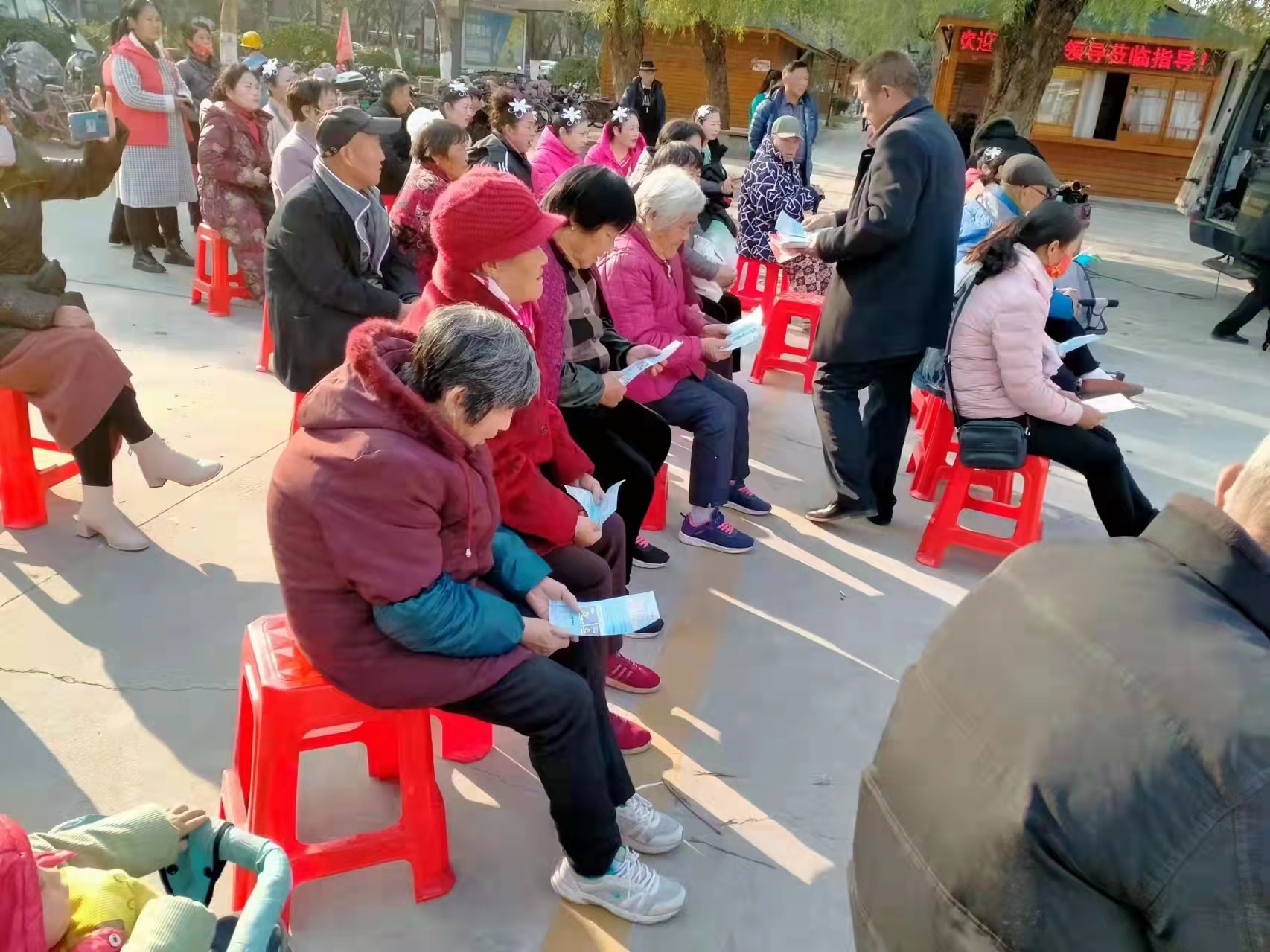 圖:公益演出后防凍宣傳現(xiàn)場 一名黨員就是一面旗幟,我們公司黨委有很多這樣的旗幟,很多這樣的旗幟在一起,就拼成了公司建設的大旗。黨建引領下,每一個黨員的思想覺悟都得到了很大的提升,這面旗不光飄揚在以前,這面旗還會飄揚在今后…… |