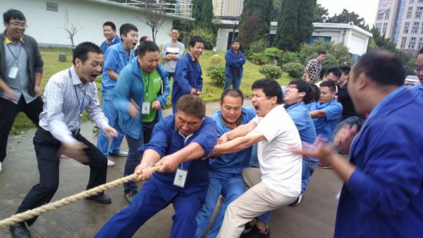 緊接著則是壓軸的拔河比賽。本次拔河比賽采取三局兩勝制,經(jīng)過抽簽,第一輪由行政污水聯(lián)隊(duì)對陣客服聯(lián)隊(duì),工程聯(lián)隊(duì)對陣生產(chǎn)聯(lián)隊(duì)。最終客服聯(lián)隊(duì)、生產(chǎn)聯(lián)隊(duì)勝出。在第二輪的比拼中,客服聯(lián)隊(duì)連勝兩局蟬聯(lián)冠軍。拔河比賽是公司歷年舉辦文體活動的重頭戲,能高度展現(xiàn)團(tuán)隊(duì)成員協(xié)作統(tǒng)一的能力,更能體現(xiàn)全體成員團(tuán)結(jié)一致,奮勇拼搏的精神風(fēng)貌。
